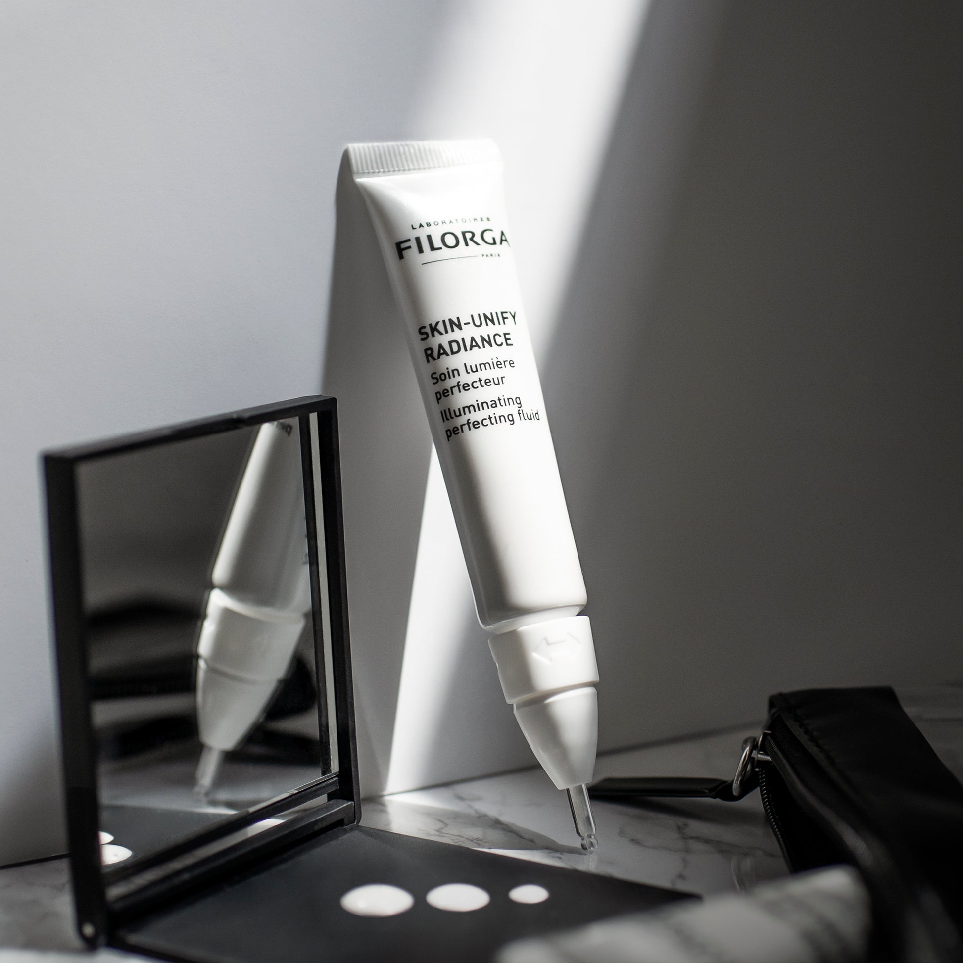 The fluid texture of this perfecting radiance care is infused with iridescent pearly particles specifically selected to blend into the skin to reveal radiance.